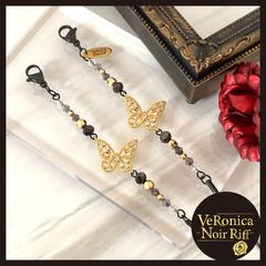 フラックバタフライ2wayマスクストラップ&メガネストラップ ネックストラップ マスクストラップ メガネストラップ マスクチェーン マスク メガネチェーン グラスコード 黒 ブラック 蝶 かっこいい おしゃれ ネックストラップ ベロニカ工房 ノワールリフ