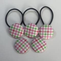 チェック柄ヘアゴムセット 3個+ゴムなし2個