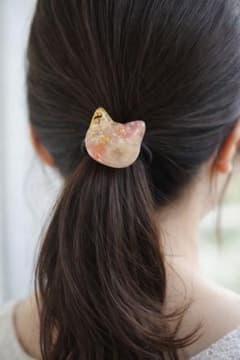 ねこ ヘアゴム レジン|ドライフラワー入り 大人可愛い ハンドメイド