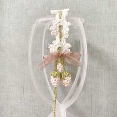 手編み リボンの付いたいちごのヘッドドレス ホワイト×ピンク×グリーン