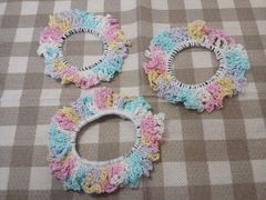 シュシュ 毛糸 ニットシュシュ パステル ハンドメイド