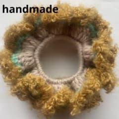 ハンドメイド シュシュ マスタード ミントグリーン ベージュ ふわふわ かぎ編み