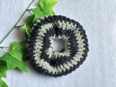 ハンドメイド シュシュ ホワイト グレー ピンク かぎ針編み 春カラー 毛糸