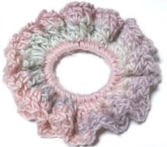 ニットシュシュ(かぎ編み)!ピンクグラデーション♡wool100%で軽フワ