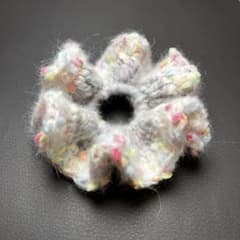 ヘアアクセサリー シュシュ 毛糸 かぎ編み モヘア調 ハンドメイド ホワイト