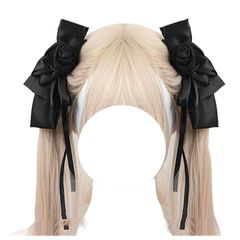 [トクとユウ] ゆめかわいい ゴスロリ 髪飾り 2点セット 女の子 バレッタ 薔薇 ヘアアクセサリー 森ガール 花 リボン お人形 おしゃれ 蝶結び 超可愛い コスプレ系 ガールズ イベント 通学 (ブラック) 0