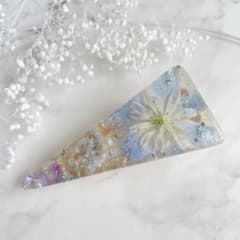 レジンヘアクリップ 水色 ピンク 花 透明感 大人可愛い ドライフラワー
