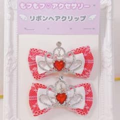 【791】 地雷系 量産型 推し色 ティアラリボンヘアクリップ レッド