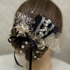 振袖 袴 髪飾り ブラックパールフリル和玉ドライフラワー金箔