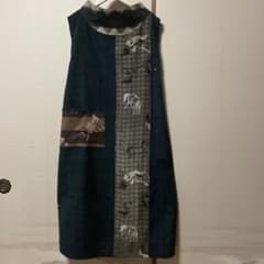 着物リメイク499 変わり襟チュニック ロングワンピース ジャンパースカート
