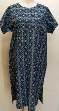 再販 新品 大島紬 着物リメイクワンピース ゆったり Lサイズ