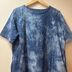 藍染 綿麻のワンピース 自然素材100% かご染 天然染料