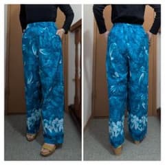未着用 着物リメイク ワイドパンツ 訪問着かな 青緑の綺麗な和柄