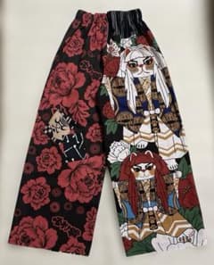和柄 ちりめん ワイドパンツ ハンドメイド