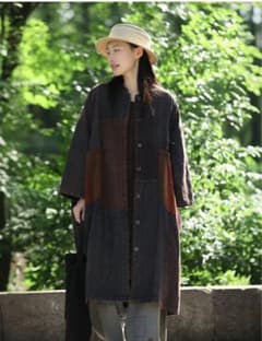 銘仙 ハンドメイド 花柄ブラウン長袖スプリングコート ジャケット
