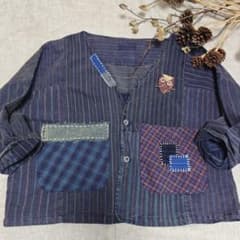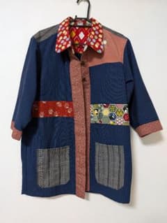 着物リメイクパッチワークも施して黒アウタージャケットブラウスお買い得