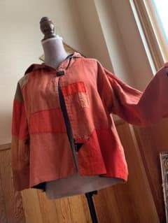5Z09 紅花染めフード付きジャケット べに花 雪ん子絣 型染め