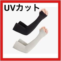 アームカバー 2セット UVカット 指穴あり 黒×グレー 接触冷感 アウトドア