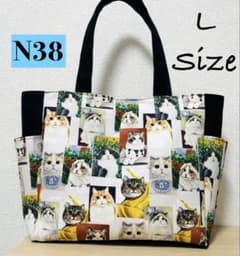 猫ちゃんのコラージュ柄 サイドポケットトートバック N38