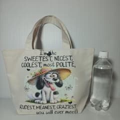 ♡犬プリント/お散歩/ミニ・トートバッグ /ホワイト♡
