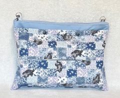 ハンドメイド ショルダーティッシュケース 水色ねこ
