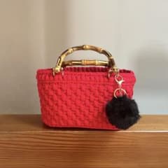 真っ赤×ロシアヤーン ズパゲッティ マルシェバッグ バンブーハンドル レッド