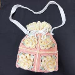 かぎ針編み 薔薇グラニースクエアバッグ イエロー