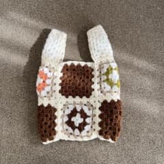 ☆12/13まで値下げ⭐︎ハンドメイド/グラニースクエアバッグ/ホワイト/ブラウン