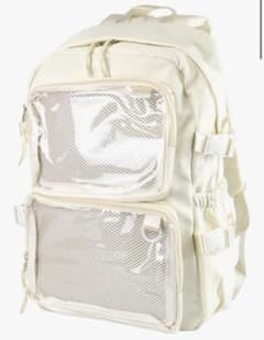 リュック型痛バッグ推し活 ホワイト デコレーション 2段クリアポケット付き