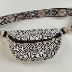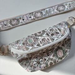 インド刺繍のボディバッグ(ピンク×グリーン)