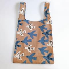 エコバッグ レジバッグ バード ブラウン 北欧風生地 ハンドメイド