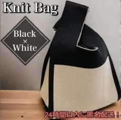 値下げ499円ま △スクエアデザイン ニットトートバッグ 黒緑 サブバッグ 43