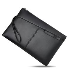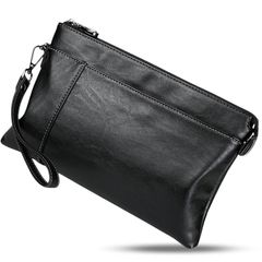 【新品】 [LiMoCo] シンプル クラッチバッグ メンズ フォーマル 手提げストラップ 2way 大容量 軽量 ファスナー 合皮 ビジネス 手持ち バッグインバッグ コンパクト (ブラック, M) 1