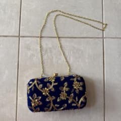 インド伝統刺繍 ショルダーバッグ クラッチバッグ エスニック 青