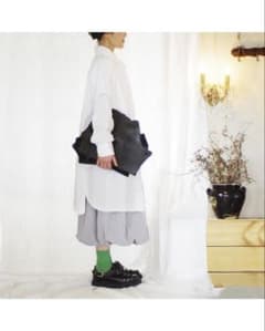 #001オブジェのようなクラッチバック 黒牛革存在感変形鞄