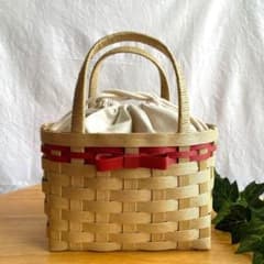 新品 竹籠バッグ かごバッグ バッグ 一閑張り 巾着 4個32x18・25x15