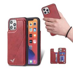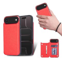 【新品】 for iPhone 17 Air ケース スタンド機能 ICカード収納 カード収納 シンプルなレトロなファッション、防水と防汚、多機能財布収納(赤)
