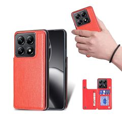 【新品】 for Xiaomi 14 Ultra ケース スタンド機能 ケース ICカード収納 カード 背面カード収納 左と右の電話ケースを反転、シンプルなレトロなファッション、防水と防汚電話ホルダー、多機能財布収納付き、PUレザー、TPUソフトインナー(赤)