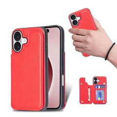 【新品】 for iPhone 16 ケース スタンド機能 ケース ICカード収納 カード 背面カード収納 左と右の電話ケースを反転、シンプルなレトロなファッション、防水と防汚電話ホルダー、多機能財布収納付き、PUレザー、TPUソフトインナー(赤)
