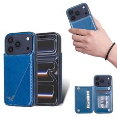 【新品】 for iPhone 17 Pro ケース スタンド機能 ICカード収納 カード収納 シンプルなレトロなファッション、防水と防汚、多機能財布収納 (ブルー)