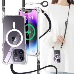 【新品】 フォンネックレス iPhone 14 / 13 用 ロープショルダーストラップ付きクリアケース [ クロスボディフォンケース 首かけ 斜めがけ 肩掛け ネックストラップ ネックホルダー ] アップル アイフォンケース バックカバー 背面ケース PN2