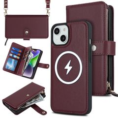 【新品】 Pelanty 縄掛けケース for iPhone 14 手帳型 Magsafe対応ワイヤレス充電 for iPhone 13 背面ケース 2in1分離式 携帯カバー 肩掛け斜めがけショルダー 財布型カバー マグネット 取り外し自由 両用2way I