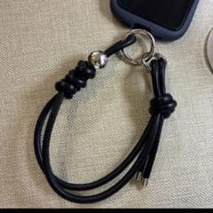 ★New★スマホショルダーストラップ ブラック×ブラウン マクラメ