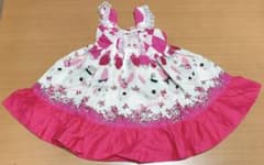 ハンドメイド お花イチゴ柄 編み上げ ビッグリボン付き ワンピース 新品未使用