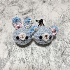 あみぐるみヘアゴム ハンドメイド うさくま ブルー