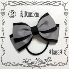 ヘアゴム 即購入OK【ダブルリボン②】グレー ハンドメイド キッズ レディー