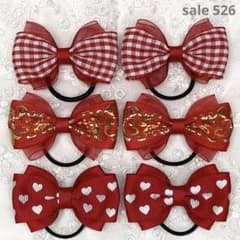 【まとめ売り 526】ハンドメイド ヘアゴム レッド系 3柄6個セット