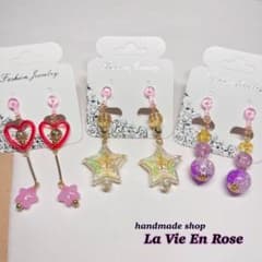 ハンドメイド ★ 子供用 わくわく セレクト イヤリング 3点セット