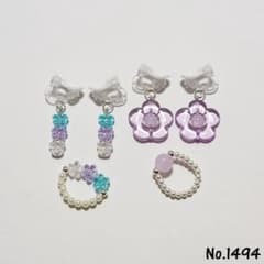 No.1494 キッズアクセサリー 指輪イヤリングハンドメイド子供用