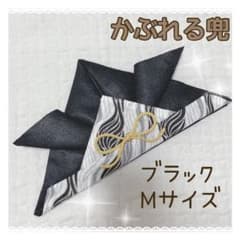 被れる兜 ブラック波柄 ゴールド紐 Mサイズ ハンドメイド
